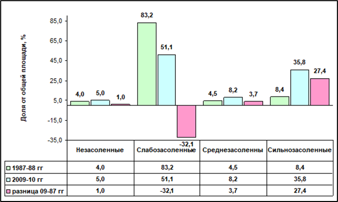 Сурет 2 – 1987 жыл мен 2010 жылдар аралығындағы топырақ тұздануының динамикасы