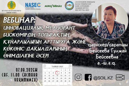 «Инновациялық мелиорант биокөмірдің топырақтың құнарлылығын арттыруға және көкөніс дақылдарының өнімділігіне әсері». Танысу үшін мына сілтемеге өтіңіз